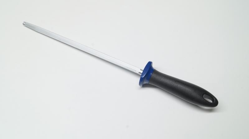 Жолобкова сталь, призначена для більш грубого згинання, серцевина виготовлена з нержавіючої інструментальної високолегованої сталі (загартована до 62-64 HRc) і гальванічно покрита шаром хрому, який є нержавіючої сталі і підвищує твердість ще на 3-4 HRc край.